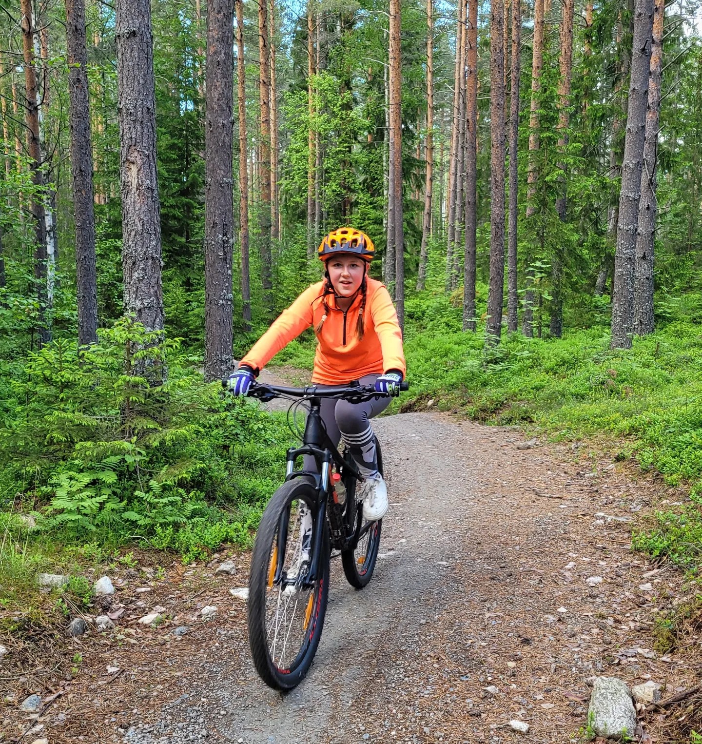 Min man har alltid älskat att cykla, när vi träffades cyklade han en hel del downhill men sen har det inte passat så bra med vardagen. Jag har aldrig cyklat, mer än till skola, träningar och jobb. För mig var cykel ett transportmedel. Tills för två år sedan då jag fick min första mtb. Nu är jag fast och hela (nästan) familjen åker gärna ut på någon stig. De små har i sommar fått testa lite blå leder och vi kör upp till en mil med dem.